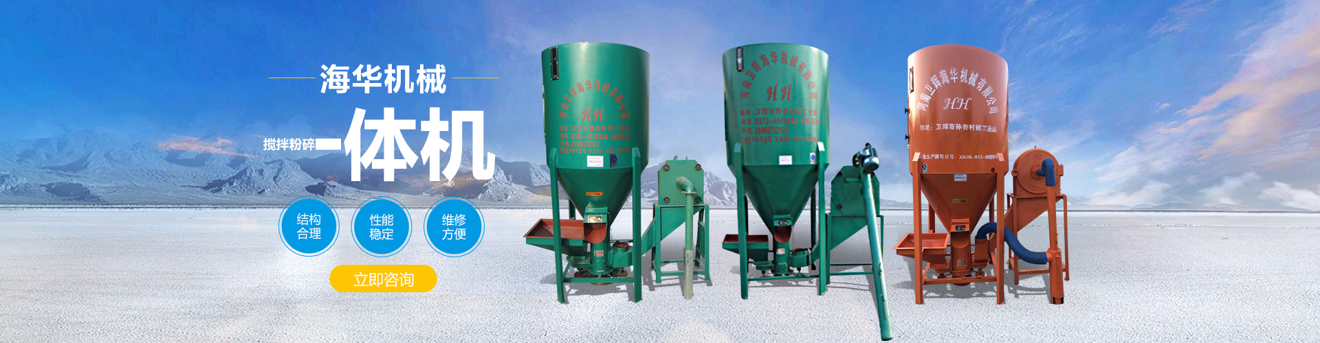 衛(wèi)輝市海華機(jī)械有限公司專(zhuān)業(yè)從事料塔料線(xiàn)、飼料攪拌機(jī)等方面的研發(fā)廠家,主要生產(chǎn)銷(xiāo)售散裝料塔、不銹鋼攪拌機(jī)、臥式攪拌機(jī)、小型飼料粉碎機(jī)、顆粒機(jī)、混合機(jī)等飼料機(jī)械設(shè)備。